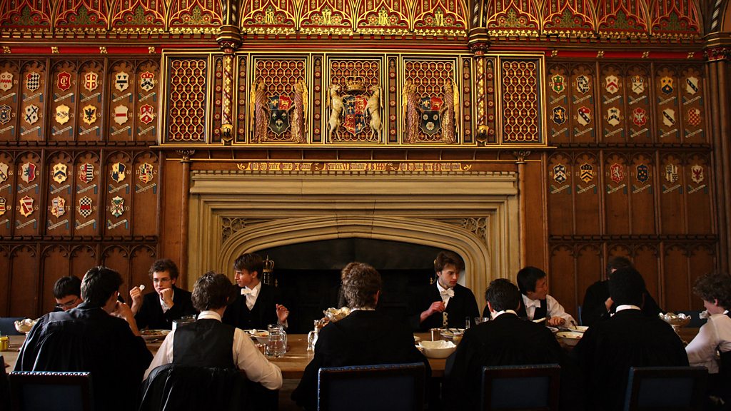 Each year some of the poorest pupils in the country enter the hallowed corridors of Eton on full scholarships. Penny Marshall meets some of those applying for places and follows them and those they inspire as they prepare for exams that could change the course of their lives. Andrew Isama reflects on the move from one of Liverpool’s toughest comprehensives to the cobbled square, 15th century chapel and Olympic rowing lake at Eton. He says that preconceptions about the school get turned on their head when scholarship pupils like him arrive. Far from being with boys who eat pate and listen to classical music he was surprised to find out just how normal his fellow pupils were: “People had the same interests as me.” The Headmaster at Eton, Simon Henderson, wants more bursaries for boys from disadvantaged backgrounds, so that anyone with the necessary talent can be financially supported at the £35,000-a-year school. Penny joins him and some of the pupils to find out what they hope to gain from the experience. The transition can be a difficult one and some struggle with the move to an institution which has educated 19 British prime ministers, including the present incumbent. But Andrew Isama believes that the influx of scholarship pupils like him also helps those who have come from privileged backgrounds - “A lot of them have never been exposed to anything else. They want to be successful but to do that they have to know how to get on with a range of people.” (Photo: Scholars at Eton College have lunch in their house dining room. Credit: Christopher Furlong/Getty Image)