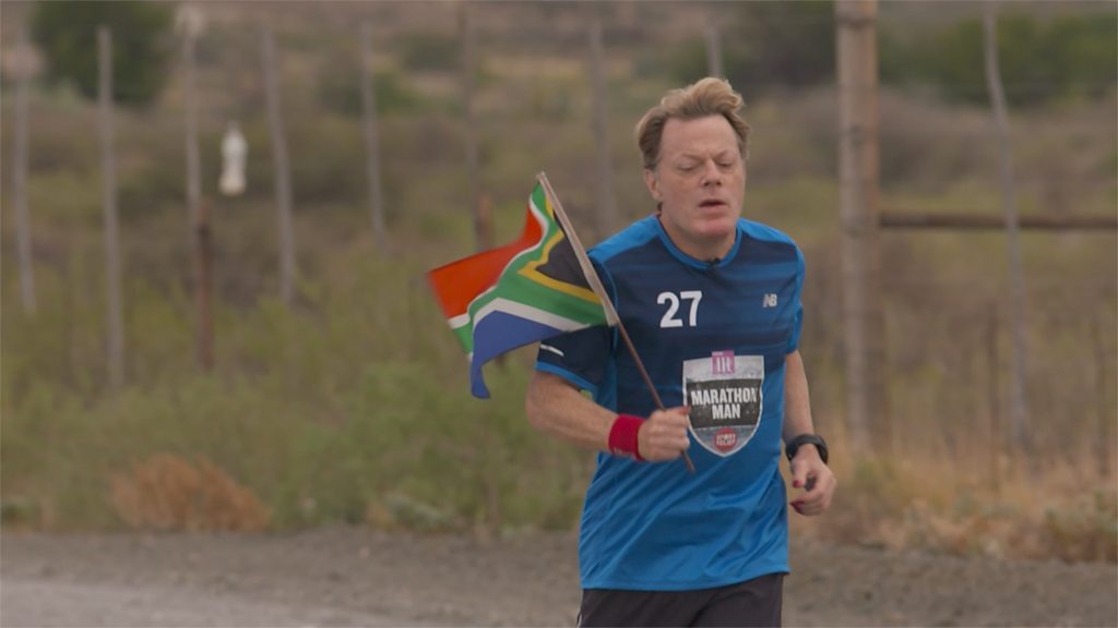 Eddie Izzard speaking live, from marathon number 21 in South Africa for Sport Relief.