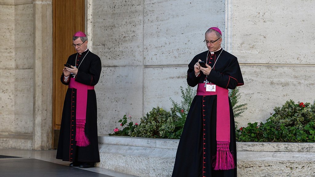 Zoe Kleinman reports on how churches are turning to the internet to widen their appeal. She meets Darren Parker, pastor at Everyday Church Online and Kevin Bennett from the Christian media company Premier who talks about the evolution of Christian websites. Business Daily's Ed Butler speaks to the Ghanaian developers of a new church app, and missionary Roald Lidal talks about using Manga to spread the word of the bible in Japan. (Photo: Catholic bishops check their phones at the Vatican; Credit: Getty Images)
