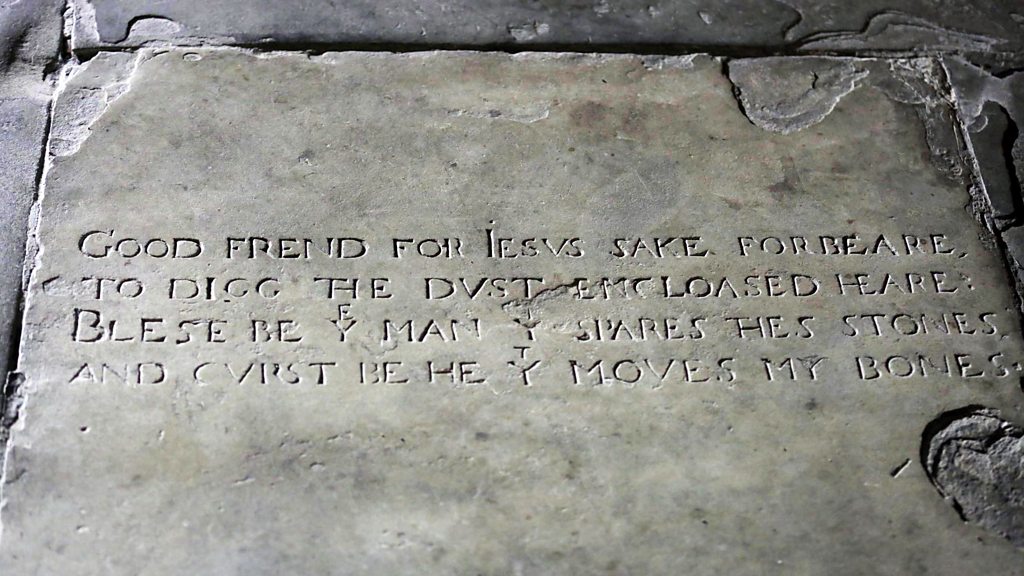A team of archaeologists has been allowed to carry out a hi-tech scan of the grave of William Shakespeare. The technology allows them to investigate what lies beneath the gravestone without disturbing it, or risking the curse which supposedly protects the site. A story published in the mid-19th century about grave robbers stealing Shakespeare's skull was considered to be fiction. Dr Helen Castor, who presents Channel 4's Shakespeare's Tomb said: "There is a peculiar repair at the head end… it must have been disturbed at some point, and a story that is thought to be fiction may not be". This clip is originally from 5 live breakfast on Thursday 24 March 2016.