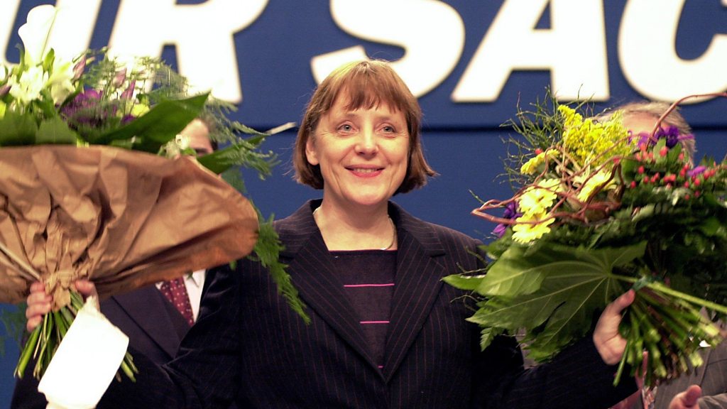 On April 10th 2000, Angela Merkel became the first female leader of a German political party - and then Chancellor in 2005. But before she became one of Europe's most powerful politicians, she had an entirely different career - as a theoretical chemist in communist East Berlin. Witness speaks to her former colleague Michael Schindhelm. PHOTO: Angela Merkel waves two bouquets after her election as chairman of the CDU in Essen, Germany on April 10th 2000.