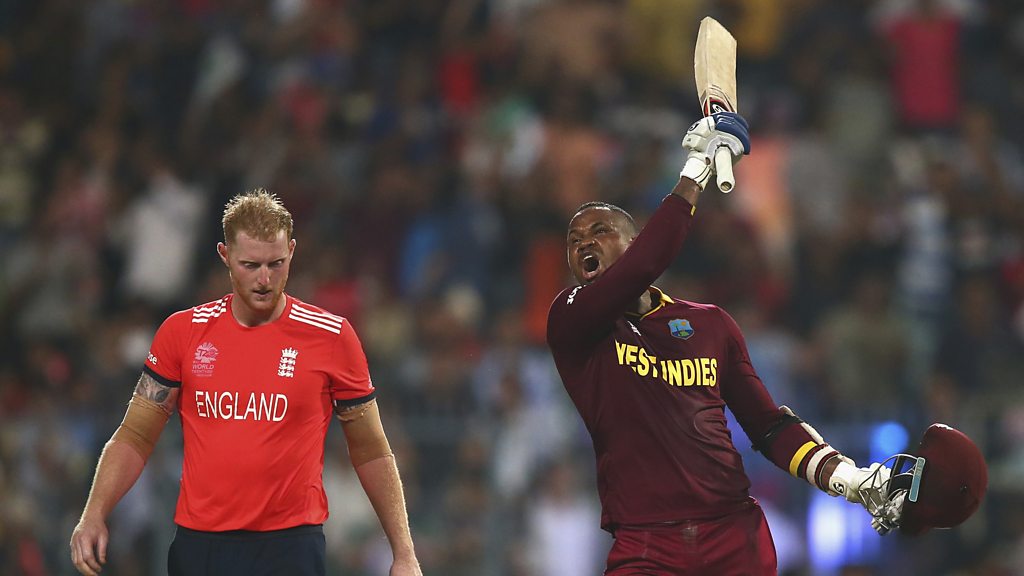 England bowler Mark Wood describes Marlon Samuels' comments about Ben Stokes as “stupid” and “a cheap shot”. Samuels was at the non-striker's end as Stokes was hit for four successive sixes by all-rounder Carlos Brathwaite when bowling the last over in Sunday's World T20 final. In his post-match news conference, Samuels taunted Stokes, calling him "a nervous laddie" who "never learns". Wood, who plays alongside Stokes for Durham, said: "I think you've got to play hard on the field but be gracious and humble off it. Instead of talking about Marlon's great innings we're talking about his stupid comments after the game". This clip is from 5 live Sport on Monday 4 April 2016.