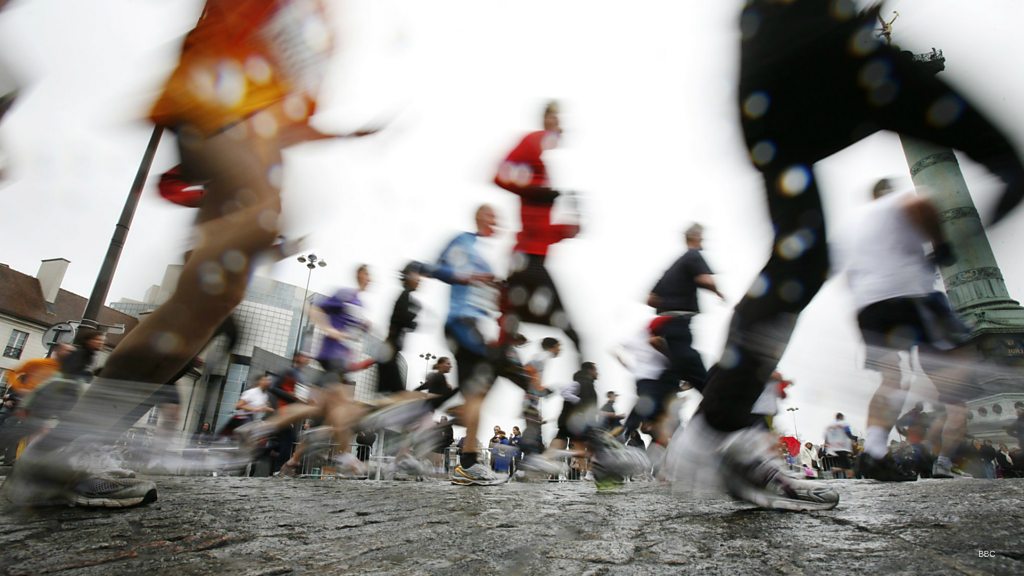 It's an increasingly common scene: hundreds of strangers getting together for group runs at parks across the country. Many are organised by the group Parkrun UK, which encourages people to meet up for a free weekly jog. You can check your time against others online afterwards. But not if you run at Little Stoke Park near Bristol. Citing concerns over wear and tear to paths, its parish council voted to become the first to charge Parkrun UK to use its grounds. The decision was greeted with dismay from runners who use it, but Giles Coren - Times columnist and enthusiastic runner - thinks participants should be made to pay. (Photo: People running in the rain. Credit: BBC)