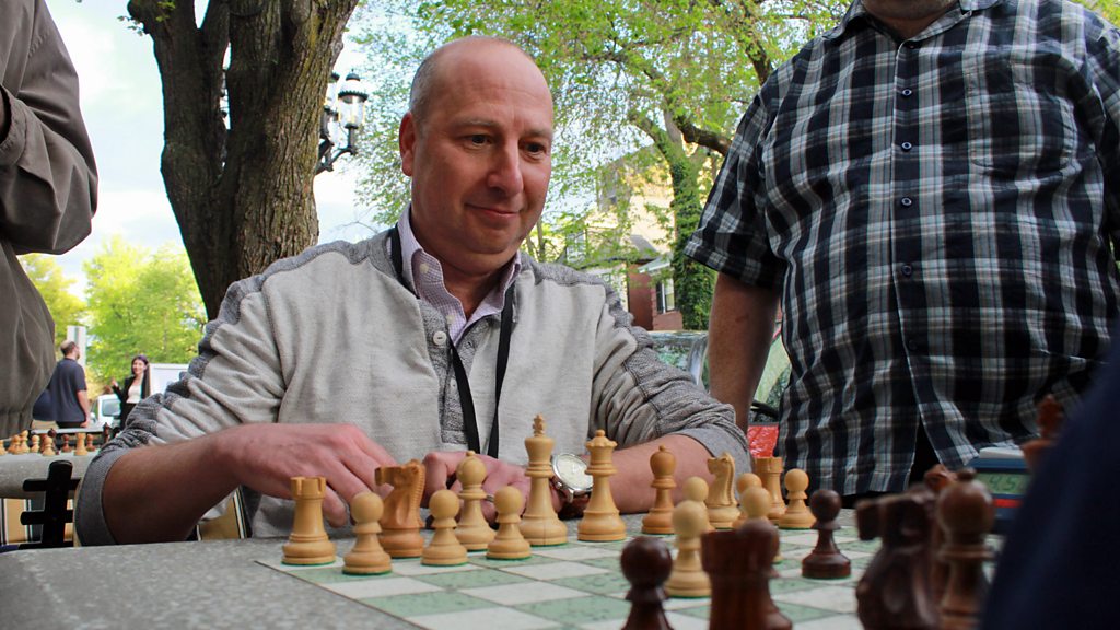 Dave Edmonds travels to the mid-western city of St Louis (the location for the musical Meet Me in St Louis, starring Judy Garland) for the US chess championships. The city has become a world centre for the game of chess. Its status has partly been achieved by funding from a controversial multi-millionaire, whose childhood included time in an orphanage. Rex Sinquefield is well known for his fascination with the game and his enthusiasm is shared by many others. There is a thriving chess centre, elite tournaments which attract some of the top players, a Chess Hall of Fame and chess lessons in local schools. St Louis is one of America's most violent cities and has most recently been in the news for race riots which erupted when an unarmed black man was shot by police. Can the game of chess serve to lessen racial tension and unite its citizens across the board? (Photo: Dave Edmonds playing chess in St Louis)