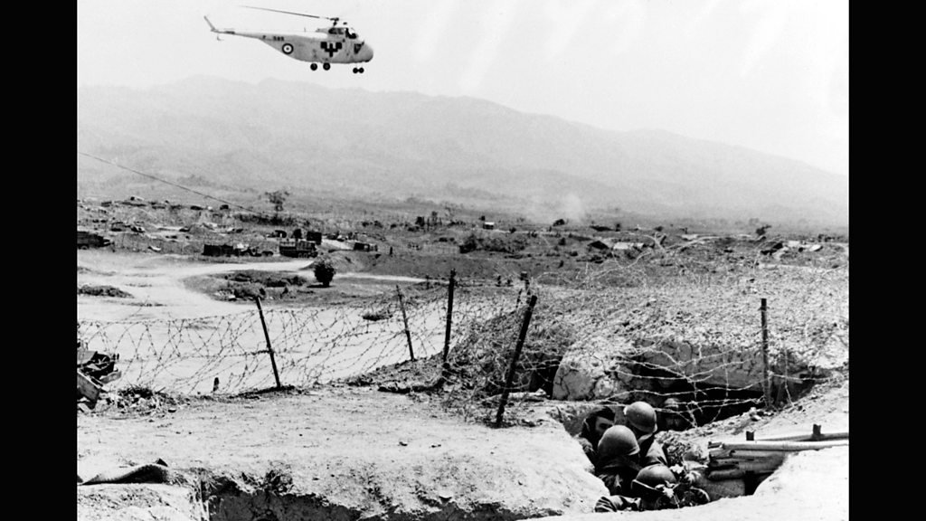 In 1954, French forces surrendered after a bloody 56 day siege of their base at Dien Bien Phu in the north of Vietnam. Their defeat by the communist independence movement, the Viet Minh, signaled the end of French colonial rule in Indochina. We hear from two veterans who fought on opposing sides in the Battle of Dien Bien Phu. (Photo: A French military Red Cross helicopter preparing to land, while French soldiers try to defend their positions in Dien Bien Phu against the Viet Minh, 23 March 1954 Credit: AFP/Getty Images)