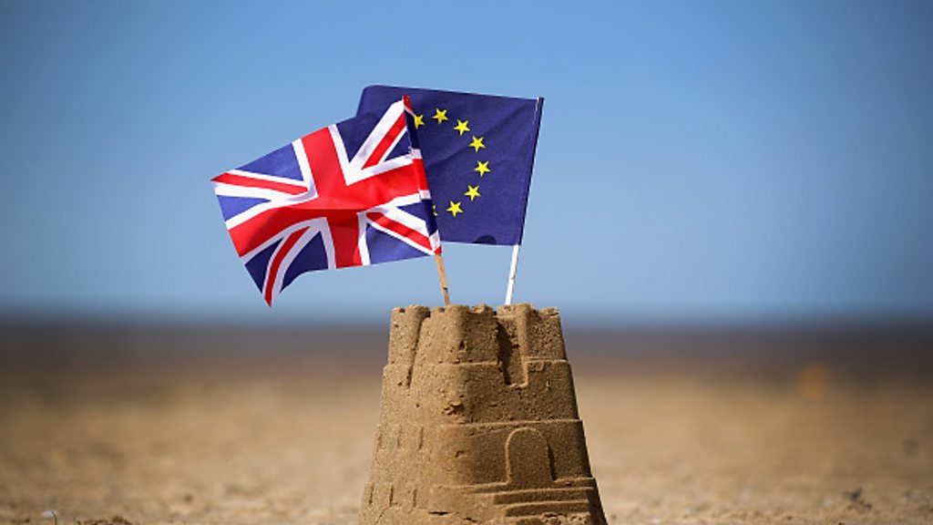 As the UK prepares to vote on whether to stay or leave the European Union we hear different sides of Britain's great debate. Jonathan Dimbleby is joined by former EU Commissioner Lord Chris Patten and the economic historian Nick Crafts, both who favour remaining in the EU, as well as former Foreign Secretary Lord David Owen and the economist Ruth Lea who support Britain leaving the European Union. (Photo: The European Union flag and the British flag sit on top of a sand castle on a beach in Southport, United Kingdom. Credit: Christopher Furlong/Getty Images)