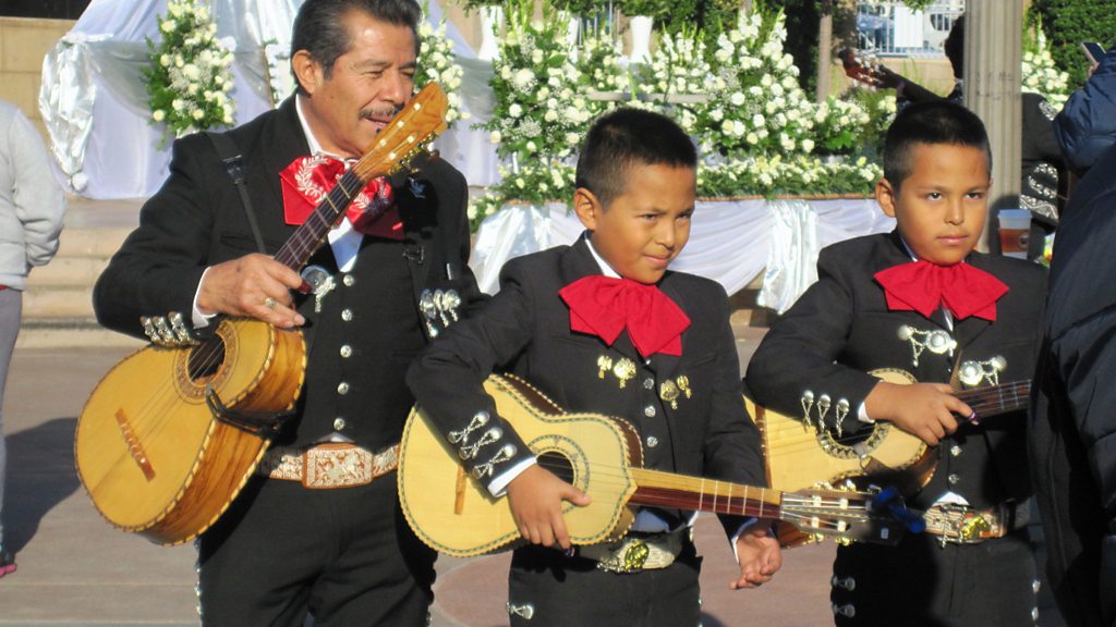Like day labourers working in construction, the mariachis of Boyle Heights, East LA, hang around on Mariachi Plaza to pick up work. You will see them most days in their dark suits, embroidered jackets, and silver buttons running up the sides of their pants. The life of a ‘street’ mariachi is pretty unpredictable. In the past, people used to drive, or walk up, to hire them. Now bookings often come over the phone. Boyle Heights is changing. Rents are rising and, especially since the arrival of the Metro Station, developers are moving in. It is hard to know how much this will affect the work of the mariachi. Writer Evangeline Ordaz was born a block from Mariachi Plaza and worked for years as a legal aid attorney in the neighbourhood. She talks to musicians and residents at neighbourhood celebrations for Santa Cecilia – the adopted patron saint of the mariachi – and spends a night in the Latino suburbs of Los Angeles with the mariachis of Boyle Heights, East LA. (Photo: Children wearing mariachi suits with guitars, take part in the Santa Cecilia procession)