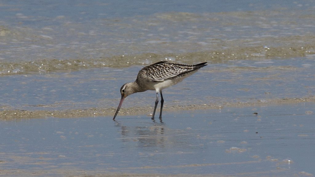 Before shorebirds take to the air on the East Asian Australasian Flyway, they fatten up to twice their normal weight. Only then do they have enough fuel for the 7,000 kilometre flight to China. They grow bigger hearts, and bulk up their flight muscles. They also shrink their guts to shed unnecessary weight, says Chris Hassell, shorebird ecologist of the Global Flyway Network. Image: Bar-tailed Godwit, feeding for migration, New South Wales. Credit: Ann Jones