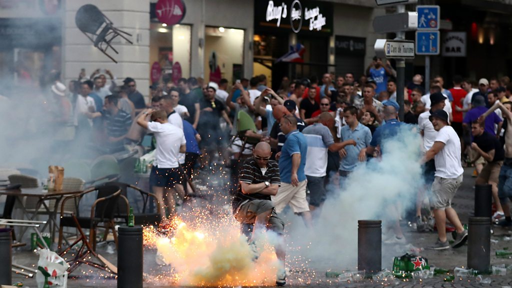 This week Owen Bennett Jones and his guests on Newshour Extra explore the reasons behind the shocking level of fan violence at the Euro 2016 football championships in France. English and Russian supporters clashed both on the streets and inside the stadium, there were serious injuries, and tear gas was used by the police the break up the riots. We ask what motivates groups of young men to participate in group acts of violence, and to what extent they are organised by political groupings intent on fomenting unrest and confrontation with the police. (Photo: a tear gas canister explodes as England fans clash with police in Marseille. Credit: Getty Images)
