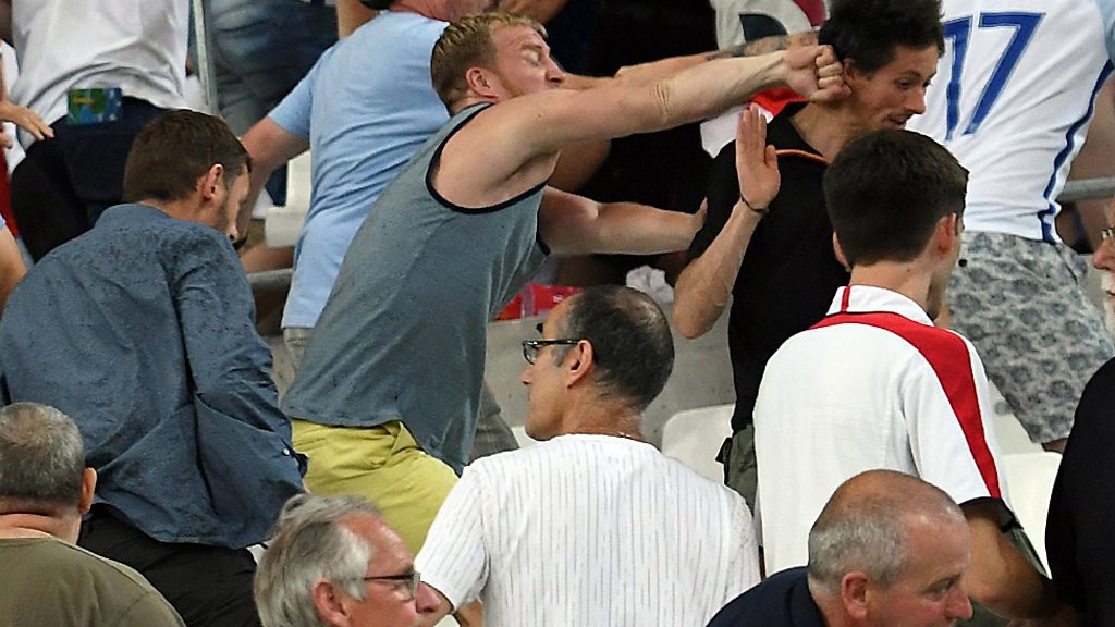 The England football manager, Roy Hodgson, and captain Wayne Rooney have urged supporters to avoid a repeat of the clashes with Russian fans on Saturday. UEFA has threatened to expel both sides if there is any more violence. French police said much of the trouble was caused by gangs of "hyper-fast", "hyper-violent" Russian hooligans known as Ultras, which have links to the far right. Steve Rosenberg looks at the story behind the Russian gangs. (Photo: Russian fans clash with England supporters in Marseille. Credit: EPA)