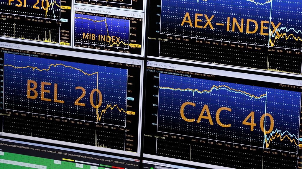 Brexit vote: With markets down and currencies wobbling, how worried should Europe and the world now be? We hear from Jeremy Stretch, head of currency strategy at Canadian Imperial Bank of Commerce, from Ngaire Woods, dean of the Blavatnik School of Government in Oxford, and Markus Beyrer, who is Director General of BusinessEurope. In Brussels we also get the latest political view from Jacki Davis, a senior policy advisor to the European Policy Centre, a Brussels-based think tank. (Picture: Screens display market rates at the Euronext Stock Exchange in Paris as Britain votes to leave the European Union; Credit: Thomas Samson/AFP/Getty Images)