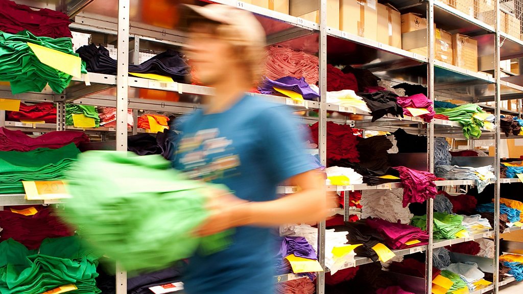 What will the UK's departure mean for EU employees in the UK and for British businesses in Europe? Presenter Manuela Saragosa speaks to the head of Bosch's UK business, Steffen Hoffmann, as well as to David Garcia Gonzalez, the Spanish founder of London based translation firm GoLocalise. Meanwhile, the BBC's Joe Miller reports from the German town of Leipzig on reactions to Brexit at an "English Shop" dedicated to selling all things Anglo, and also hears from the British head of e-commerce firm Spreadshirt, Philip Rooke, about the shock of his home country's decision to leave. (Picture: Employee carrying shirts at the Spreadshirt warehouse; Credit: Spreadshirt)