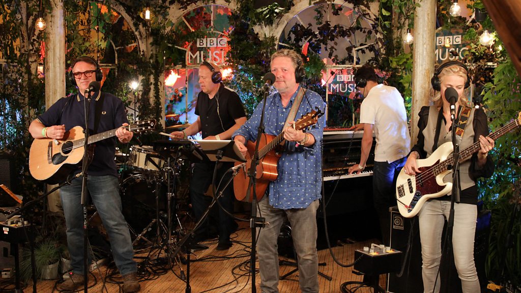 Squeeze are at Glastonbury after eighteen years away and are heading to the Pyramid Stage
