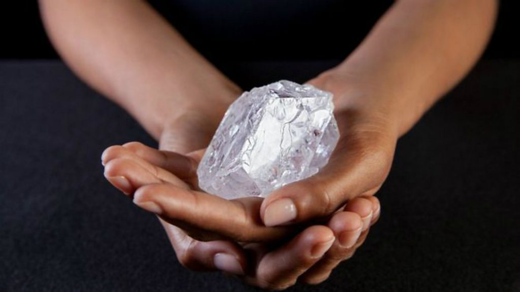 The Lesedi la Rona diamond is the size of a tennis ball and was discovered last November in a mine in Botswana. It was offered for sale at an auction at Sotheby's in London but didn't make its reserve. No rough diamond of this size - 1,109 carats - had ever been offered at a public auction before. William Lamb, the CEO of Lucara Diamond Corporation - which owns the mine where it was found - described the sensation of holding the enormous stone to Duncan Barkes on the Up All Night programme.