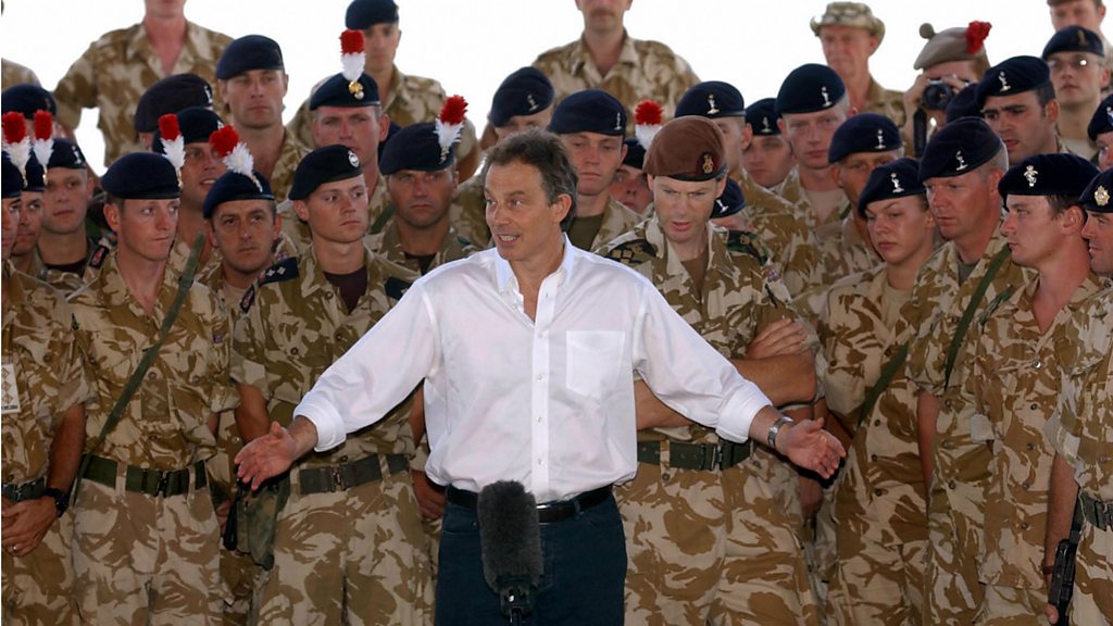 General Sir Michael Rose, who is supporting the families of servicemen and women killed and injured in Iraq, said they "will take action" if there is evidence of a "dereliction of duty" after the Chilcot inquiry is published. Sir Michael said the families have recruited the law firm which took the Omagh bombers to civil court which "bankrupted them for life" after the criminal case had failed. "If there is evidence of dereliction of duty they will do the same thing to those concerned," he continued. General Sir Michael Rose previously commanded British forces in Bosnia. Tony Blair's office were asked to a response to the interview but told us they were not commenting in advance of the report's publication. (Photo. Tony Blair with troops in Iraq in 2003. Credit. Getty Images.)