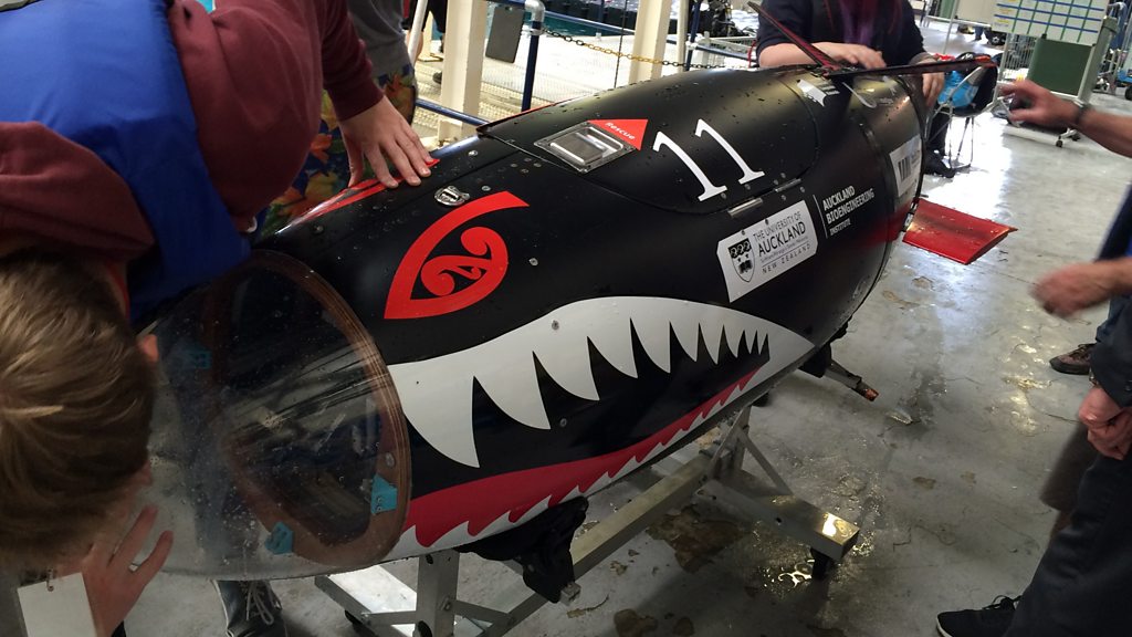 Teams of University students from around the world, are racing their human-powered submarines around a demanding slalom course. It's a unique sporting and engineering challenge, and it's against the clock. And if that's not enough, the teams have already had to pass a series of tests before taking to the water The race director William Megill described one of the submarines to BBC Radio Solent reporter Neil Sackley.