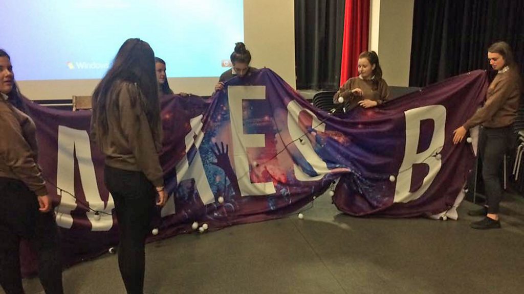 Criw Ysgol Glan Clwyd yn recordio ar gyfer taith Maes B / C2.