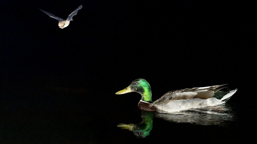 A Daubenton's Bat has company as it hunts for insects over Exhibition Park lake. It's not often that this species is spotted there. SOUND: Chris Watson PHOTOGRAPH: Kaleel Zibe