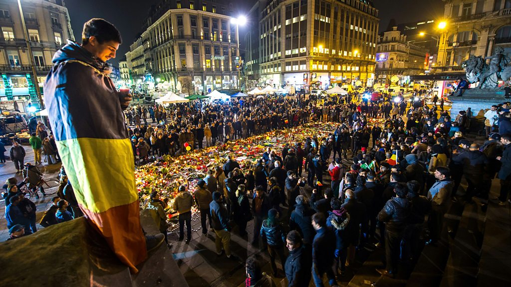 With high profile attacks in Brussels, Nice and Munich, you might think that 2016 has been a particularly bad year for terrorism in Europe. But what happens when you put the numbers in historical context and compare them with figures for the rest of the world? More Or Less hears from Dr Erin Miller of the Global Terrorism Database and Harvard psychology professor Steven Pinker. (Image: A man wrapped in a Belgian flag holds a candle as people gather at a makeshift memorial on Place de la Bourse two days after a triple bomb attack hit. Credit: Philippe Huguen/AFP/Getty Images)