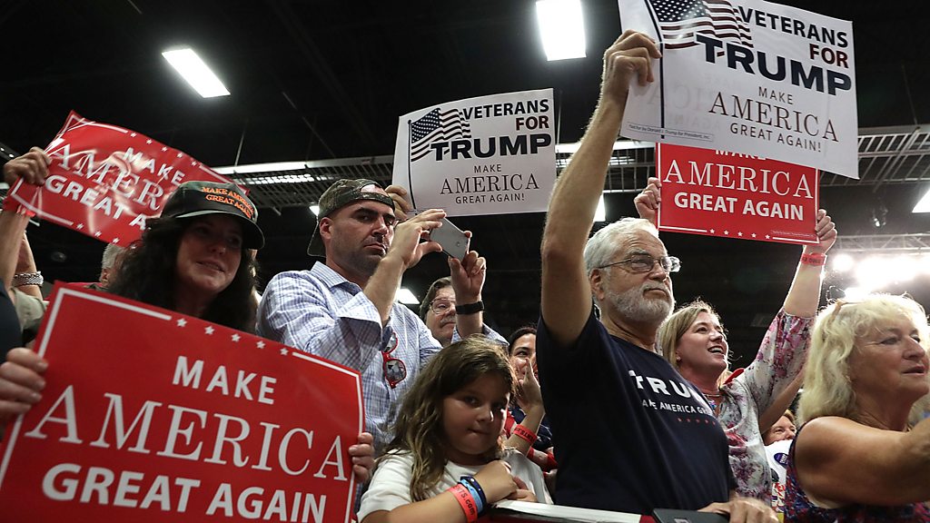 Former adviser to Congress Daniel Drezner fears a Trump presidency could lead to “terrifying” nuclear proliferation in the Middle East. (Supporters hold up signs during a campaign rally of Republican presidential nominee Donald Trump at Fredericksburg Expo Center August 20, 2016 in Fredericksburg, Virginia. Credit: Getty Images)
