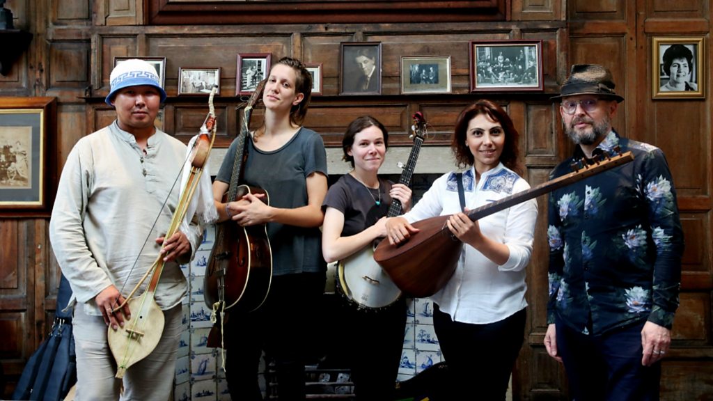 Three disparate folk traditions combine in this exclusive Late Junction collaboration session, recorded in the music rooms of Craxton Studios, a turn-of-the-century house in north-west London. Duo Anna & Elizabeth play Banjo, fiddle and guitar and draw their inspiration from the mountain music of Appalachia, vocalist and saz virtuoso Asiq Nargile is from the Asiq tradition in Georgia while Bady-Dorzhu Ondar from the Alash Ensemble is a master of harmonic Tuvan throat singing, a technique from the southern fringes of Siberia that allows each singer to produce multiple pitches simultaneously. Over the course of a day in the oak panelled rooms of Craxton studios the musicians worked on several pieces including a percussive tap performance from Anna Roberts-Gevalt and a harmonic Tuvan vocal piece from Bady-Dorzhu Ondar.