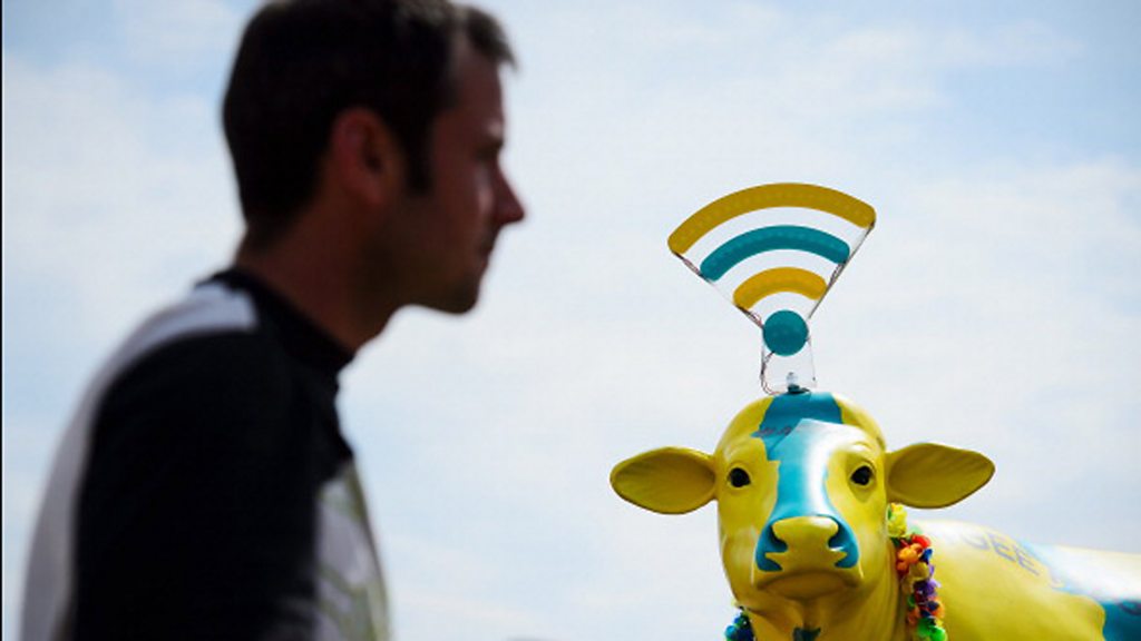 A ruling by the European Court has drawn some critics to suggest that free Wi-Fi might fall foul of copyright laws. Click talks to the MEP, Julia Reda. Online Map Charting Food Loss/Waste A non-profit organisation in Singapore has launched a plan for an online map to show innovation and curb loss in the food chain. Click hears from Gwyneth Marcelo Fries from Forum for the Future. Zipline to the Rescue Zip is a small robot airplane designed for a high level of safety, using many of the same approaches as commercial airliners. Keller Rinaudo from Zipline explains how the Zip drone planes will be used to carry vaccines, medicine, or blood in Rwanda. Playable City The fourth international Playable City Award has just unveiled its shortlist. The producer, Hilary O'Shaughnessy discusses how to make cities smarter and more playful. (Photo caption: A festival goer walks past a plastic cow provided by a mobile telecoms company enabling free Wi-Fi for festival goers at Glastonbury © Leon Neal/AFP/Getty Images) Producer: Colin Grant