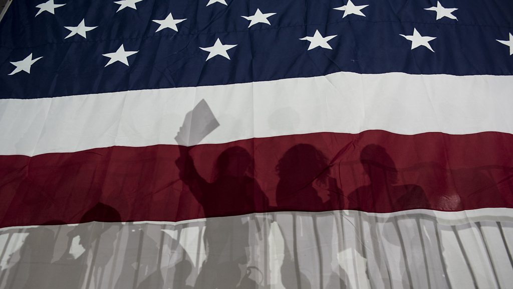 When Barack Obama was elected in 2008 there was a mood of optimism in America and around the world. No President in history has inspired such hope and promise of change as the first black man to step into the White House. In the weeks before his election the BBC drove a bus coast to coast across the US asking people about their lives and their hopes and fears for the future. Now, as Obama’s Presidency comes to an end, we are retracing that route to find out why the country seems more divided than ever. In this four part series the BBC travels from Los Angeles down through the southern states to the East coast to gauge the mood in a country where anger among the population has been spilling into the streets. In the final programme in the series we bring together five of the most exciting speakers from the road trip to talk through the burning issues in the election this year: race, migration, the economy and religion. Presenter Philippa Thomas chairs a discussion between an unemployed miner, a Trump enthusiast, a former opiates addict, a young black student and a Muslim blogger. We hear which of the candidates is going to get their vote and why. (IMAGE: American Flag with people silhouettes. Credit: Getty Images)