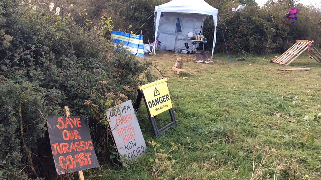 Protesters occupying a site in Swanage say they'll stay until the threat of fracking there is withdrawn. A group of local environmental activists moved onto a field at California Quarry near Durlston Head two weeks ago in a bid to stop drilling for oil and gas. Permission for exploratory work was granted by the County Council three years ago. Former Green Party leader Natalie Bennett lent her support to campaigners when visiting the site - and our political reporter Tristan Pascoe was there.