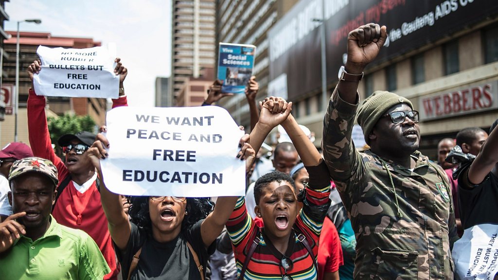 Can the African continent seize its "demographic dividend" by investing in its youth, or is it at risk of being sunk by its old nemeses of corruption and collapsing commodity prices? South Africa's economy has ground to a halt as police fight students on the street. Iraj Abedian, chief economist at Pan-African Capital, tells presenter Ed Butler what has gone wrong in his country. Meanwhile the picture across much of the rest of Africa is far rosier than many assume, despite the end of the commodity super-cycle. That is the contention of Donald Kaberuka, former president of the African Development Bank. Also, Rahul Tandon reports on how the rising tensions between India and Pakistan have spilled over into Bollywood and TV soap operas. (Photo: South African students protest in Pretoria. Credit: Mujahid Safodien/AFP/Getty Images)