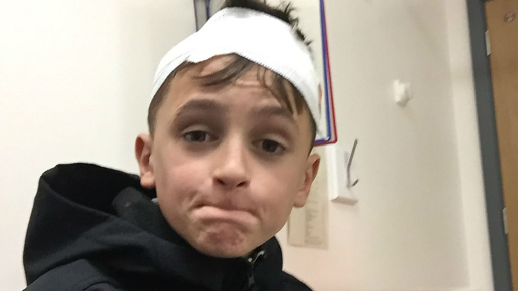An 11-year-old boy is recovering after he was hit in the head by a glass bottle thrown by a fan during the league cup semi-final match between Celtic and Rangers. Rangers fan Kraig Mackay needed seven stitches in his head after being hit by a beer bottle while walking with his family to the ground. Kraig’s dad, Gary, described the incident as “unreal” and said the atmosphere at games is “crazy”. “It’s inevitable that something like that is going to happen,” he added. Police are investigating the incident, which they describe as “abhorrent”. Rangers manager Mark Warburton said Kraig would join the club as the mascot at Ibrox on Wednesday night and watch the game from the directors' box. This clip is originally from 5 live Breakfast on Tuesday 25 October 2016.