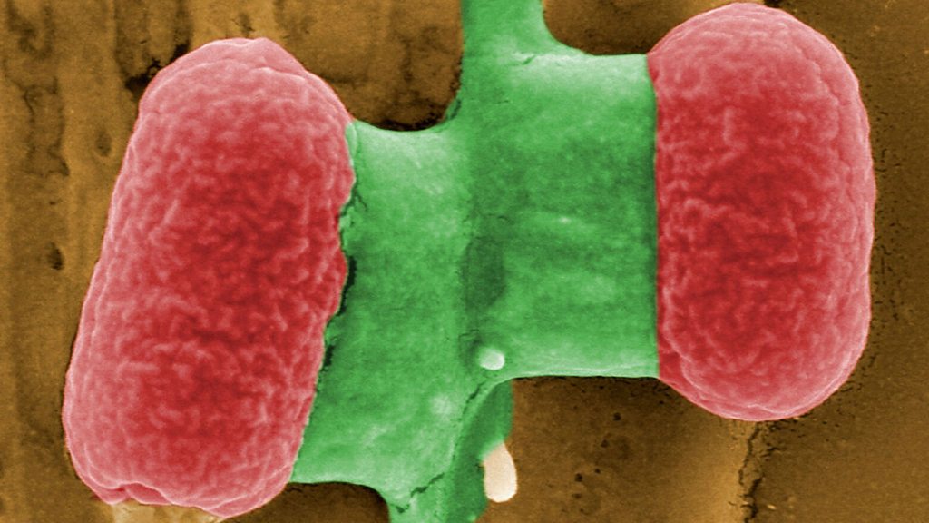 Microbiologist, Kim Hardie tells the Inquiry how scientists are hoping to stop bacteria infecting us – by preventing them from talking to each other. (Depiction of EHEC bacteria Credit: HZI/Getty Images)