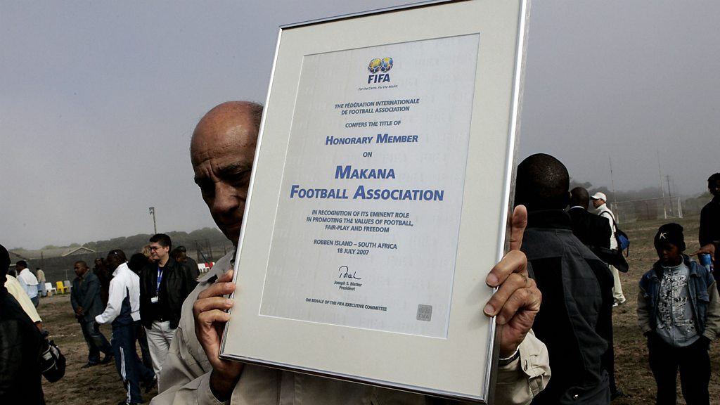 1966 was the year the 'Macana football association' was created by the prisoners of Robben Island who found themselves locked up in apartheid South Africa. Sportshour's Simon Parker has been to the island to learn more about the importance of football to those imprisoned, in the company of one of it's former inmates, Dumisani Mwandhla.. Photo - Getty Images