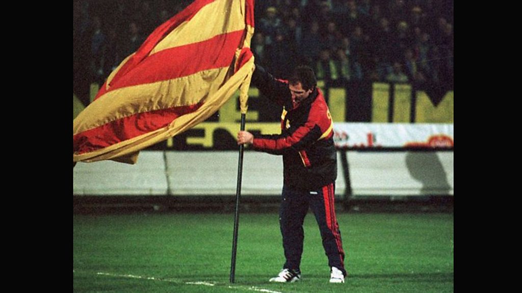 In April 1996, the manager of Galatasaray and former Liverpool star, Graeme Souness, went down in Turkish football history. After winning the Turkish Cup final, Souness celebrated by planting a Galatasaray flag in the middle of arch-rival Fenerbahce’s pitch. The Scottish manager almost sparked a riot, but won the hearts of Galatasaray supporters. Graeme Souness speaks to Cagil Kasapoglu. Photo: Graeme Souness planting the Galatasaray flag in 1996 (Turkish television)
