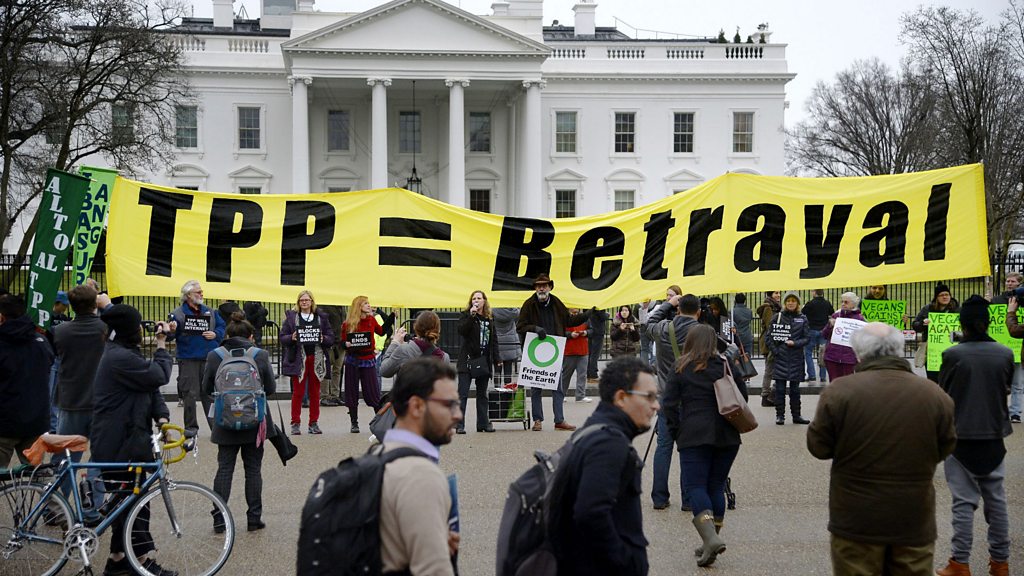 Wendy Cutler was responsible for the TPP agreement from the United States. How does she feel about Donald Trump's announcement that he will abandon it? (Photo: Activists hold a rally to protest the Trans-Pacific Partnership. Credit: Olivier Douliery/Getty Images)