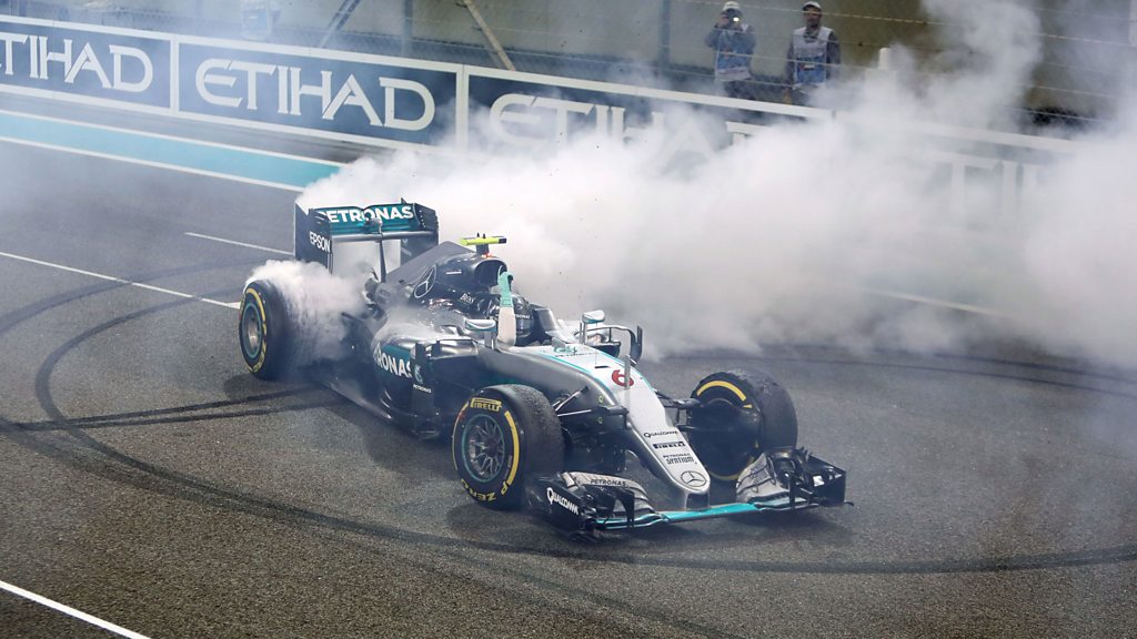 Mercedes' Nico Rosberg finishes 2nd to win his first career world title. This clip is originally from 5 live Formula 1 on Sunday, 27 November 2016.