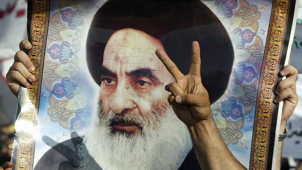 Within Shi’ism there is a high level disagreement about the role of Islam in government. Shia-dominated Iran is an Islamic republic, led by Ayatollah Ali Khamenei, a senior Islamic cleric. But the Iranian model of government - a theocratic state - is not supported by Shi’ism’s most senior Islamic cleric, Grand Ayatollah Ali al-Sistani who is based in the Iraqi city of Najaf. “Khamenei is the head of Iranian army. Sistani is not the head of Iraqi army,” explains Iraqi politician Walid al-Hilli. But, as presenter Safa al-Ahmad discovers on a visit to Iraq, Grand Ayatollah Sistani has significant influence on the way Iraq is governed. (Photo: A V-sign for victory is flashed in front of a portrait of Grand Ayatollah Ali al-Sistani. Credit: Ahmad al-Rubaye/AFP/Getty Images)