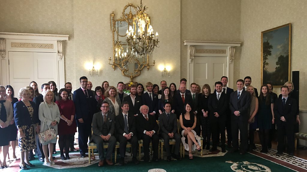 Bíonn cuid mhór daoine ag foghlaim na Gaeilge ar aip na laethanta seo. Bhí ócáid tréaslaithe ann in Áras an Uachtaráin do lucht forbartha na haipe Duolingo agus do sheachtar Éireannach a rinne an cúrsa Ghaeilge a fhorbairt. Bhí deis ag Treasa Bhreathnach freastail ar an ócáid seo a bhí eagraithe ag an Uachtarán Michael D. Ó Uiginn agus Conradh na Gaeilge. Many people are learning Irish through apps. Treasa Bhreathnach attended a special event in Áras an Uachtaráin organised by President Michael D. Higgins and Conradh na Gaeilge for the developers of the Duolingo app. .