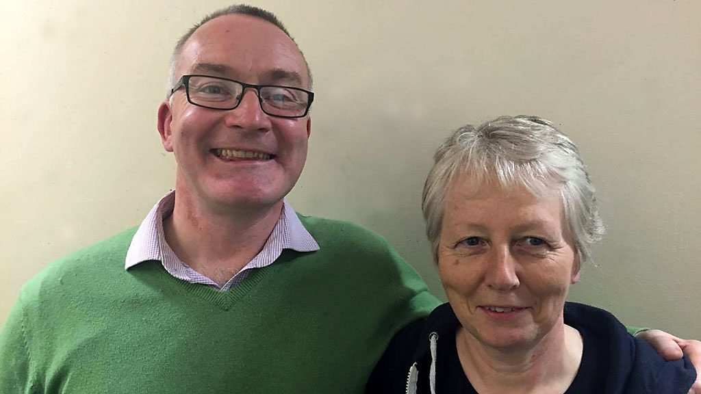 Iain Urchardan a' còmhradh ri neach-ionnsachaidh na seachdain Liz NicIllEathain
