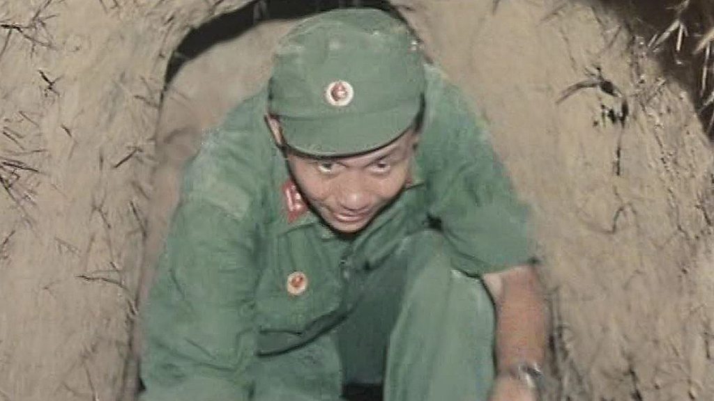 Vietnamese veteran, Le Van Lang, remembers the war in the Viet Cong's underground tunnel network in South Vietnam. A resident of Cu Chi district, 20 km north of Saigon (now Ho Chi Minh City) he helped construct the tunnels and joined the insurgency against the South Vietnamese government and their American allies. The vast tunnel network became a key base and shelter for Viet Cong guerrillas and North Vietnamese units during the war, Photo: A Vietnamese soldier in a preserved section of tunnel in the Cu Chi district, 1979 (BBC)