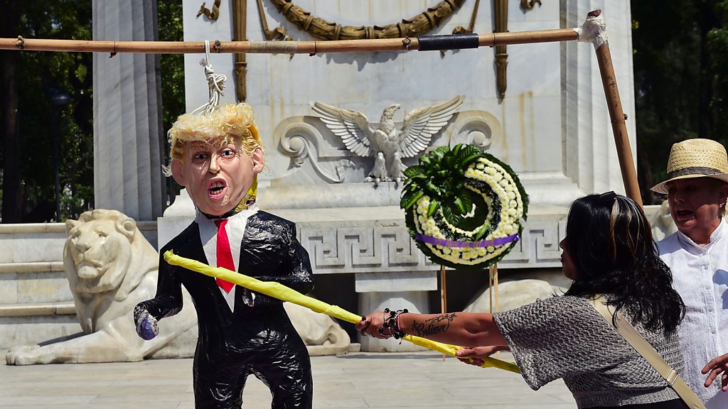 How is Mexico preparing for the presidency of Donald Trump? During the election campaign Mr Trump promised to tear up trade agreements with Mexico, build a border wall and send back millions of illegal Mexican immigrants. Caroline Bayley travels to Mexico to find out how the country feels about the US's new president and what impact his policies might have on Mexico. Producer: Anna Meisel. (Image: A woman hits a piñata of Donald Trump during a protest in Mexico City, on October 12, 2016. Credit: RONALDO SCHEMIDT/AFP/Getty Images)