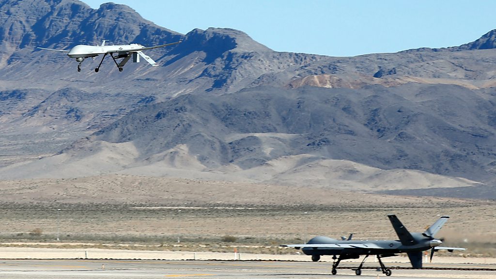 When Donald Trump takes office, he will inherit sweeping powers to kill terrorists and militants. And he is likely to do it by deploying what the US Air Force call Remotely Piloted Aircraft, but which go by a more common name - drones. Drones are a powerful weapon in the fight against terror. American drones have killed terrorist leaders and devastated al-Qaeda. The US government says their lethal precision keeps civilian casualties to a minimum, that they are cheaper than fighter jets and, crucially, they minimise the risk to US troops. That is why the US public supports their use. It is also why President Obama oversaw a dramatic expansion in drone strikes. The US Air Force has ordered a doubling of the number of drone pilots being trained. But a growing number of critics fear we are entering an ever-growing spiral of drone warfare. They say the strikes are radicalising more people than they are killing and point to the proliferation of drones, with some 89 countries now possessing them and terror groups like ISIS experimenting with their use. So what happens when everyone has drones? It is also argued that these strikes have been carried out with minimal oversight, guided by a policy that is largely secret and killing more civilians than acknowledged - that the strikes are illegal and unethical. And then there is the effect on the pilots sitting in their trailers thousands of miles away; PTSD and exhaustion are being blamed for a recruitment crisis, while many former pilots complain that this is a cowardly war. So as Donald Trump prepares to take office, Vin Ray looks at the challenges facing the drone programme and how drones are fundamentally changing the face of warfare. (Photo: An MQ-1B Predator remotely piloted aircraft (RPA) flies past a MQ-9 Reaper RPA during a training mission, 2015. Credit: Isaac Brekken/Getty Images)