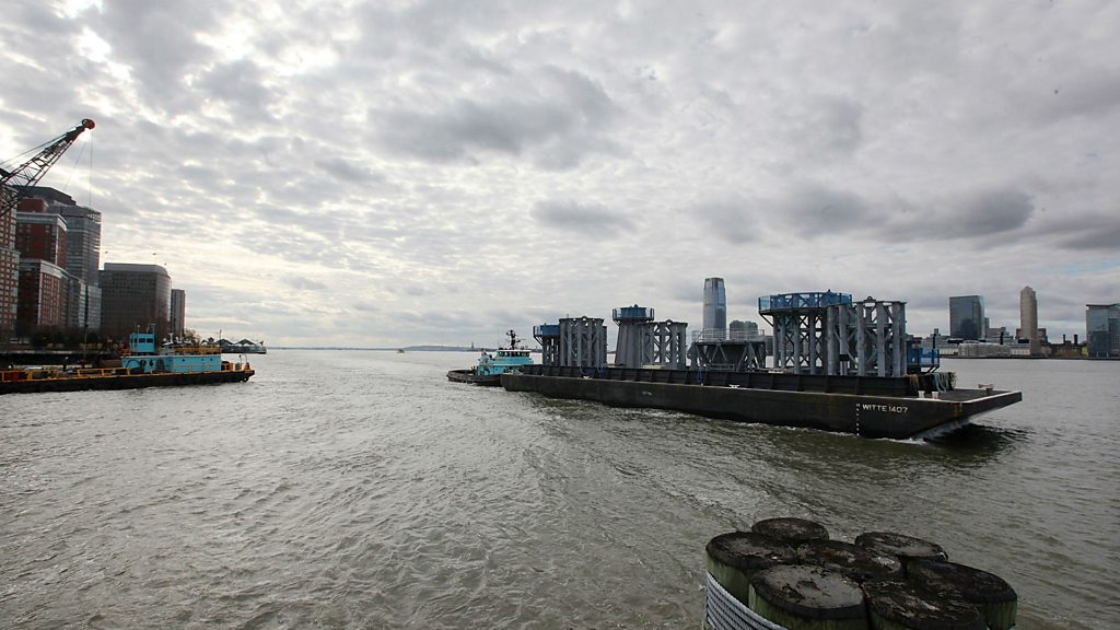 James Wentzy in New York recorded "breathing" sounds as the river ebbed and flowed into a storm drain (Photo: A barge on the Hudson River heading towards One World Trade Center, December 2012. Credit: Mario Tama/Getty Images)