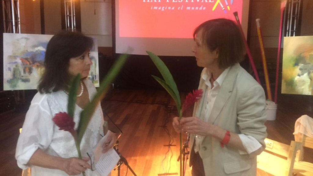 This month World Book Club are lucky enough to be in the beautiful old city of Cartagena in Colombia as part of the Cartagena Hay Festival of Literature. Harriett Gilbert will be talking to one of Colombia’s most acclaimed writers Laura Restrepo about her haunting novel Delirium and learning something about this stunning country’s troubled recent past. Returning home after a business trip to discover his beloved wife Agustina has gone mad her kindly husband Aguliar delves back into her shadowy past to try to understand what has happened. Eventually he discovers the key to her madness buried deep in a Colombian story of money, power and corruption. (Picture Laura Restrepo with Harriett Gilbert. Credit: BBC.)