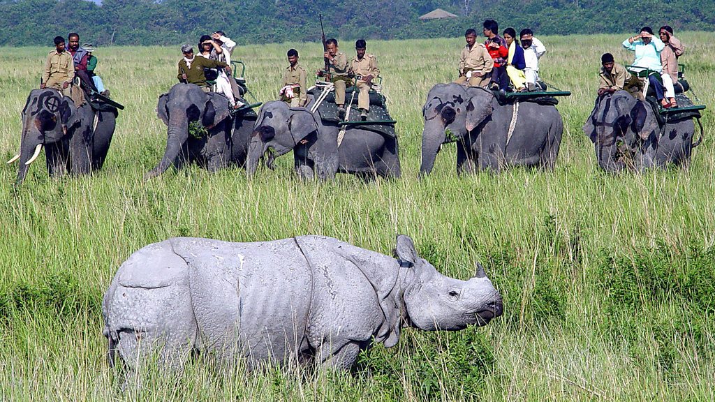 India is that rare thing in animal conservation - a success story. The country has seen the population of many endangered species including tigers and rhinos rise in recent years. Nowhere exemplifies that success better than Kaziranga National Park in the Indian state of Assam. This is where David Attenborough’s team came when they wanted to film the Greater One Horned Rhino for the BBC’s Planet Earth series. But as the BBC’s South Asia correspondent Justin Rowlatt discovers, Kaziranga’s success is built on a hardline conservation approach that critics say has resulted in violence, forced evictions - and the deaths of 50 suspected poachers. (Photo: A one-horned rhinoceros seen during an elephant safari in Kaziranga National Park in the north-eastern Indian state of Assam. Credit: Getty Images)