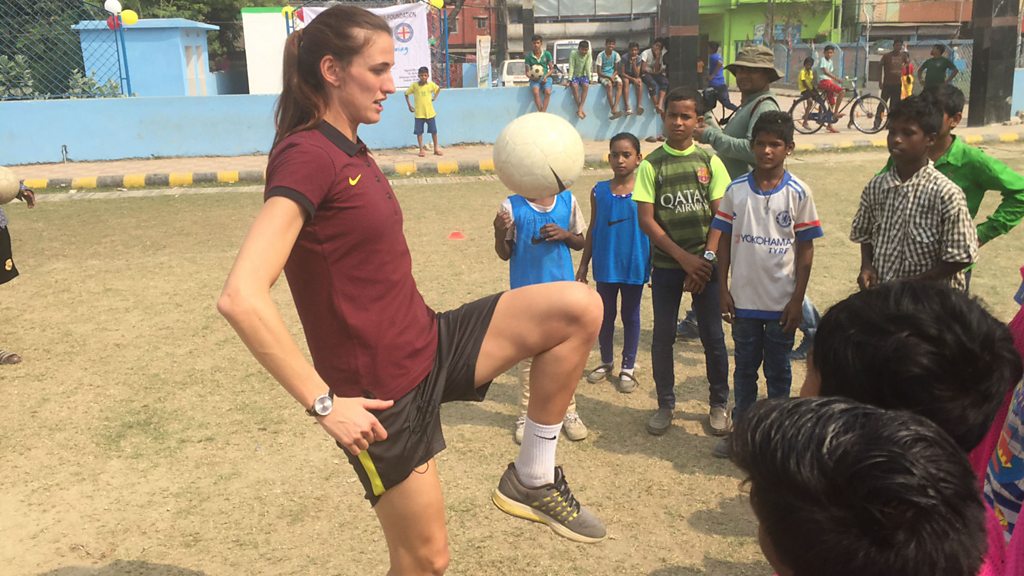 India recently launched its first ever national women's football league. It may only feature six teams but it's being seen as a crucial moment for the sport in the world' largest democracy. England and Manchester City Women's midfielder Jill Scott travelled to India to see Manchester City's global community work in action. Speaking to our reporter Rahul Tandon, in Kolkata, Scott said: "To see the enthusiasm of the kids, always smiling, always happy - it really brightens up your day." (Photo: Jill Scott playing football in Kolkata, Credit: BBC)