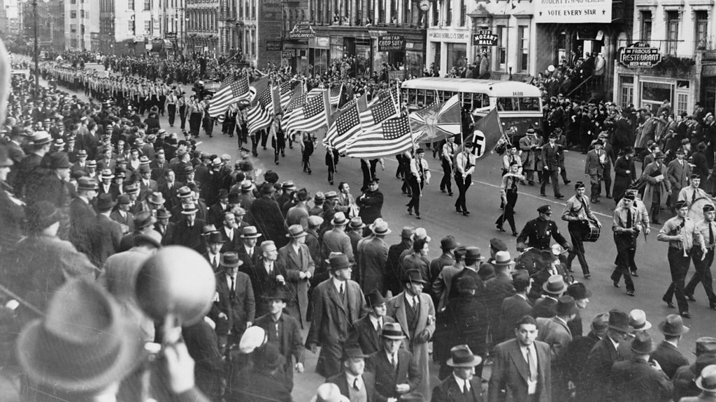 In the 1930s, a group of German-American Nazi sympathisers known as the German American Bund held rallies and summer camps across the US. In Feburary 1939, they held a meeting for 20,000 people at Madison Square Garden in New York. Lucy Burns speaks to Skip Eernisse, who remembers the Bund summer camp Camp Hindenburg in his home town of Grafton, Wisconsin. We also hear from Arnie Bernstein, author of Swastika Nation: Fritz Kuhn and the Rise and Fall of the German American Bund. (Photo: German-American Nazi sympathisers rally in the US. Credit: Library of Congress)