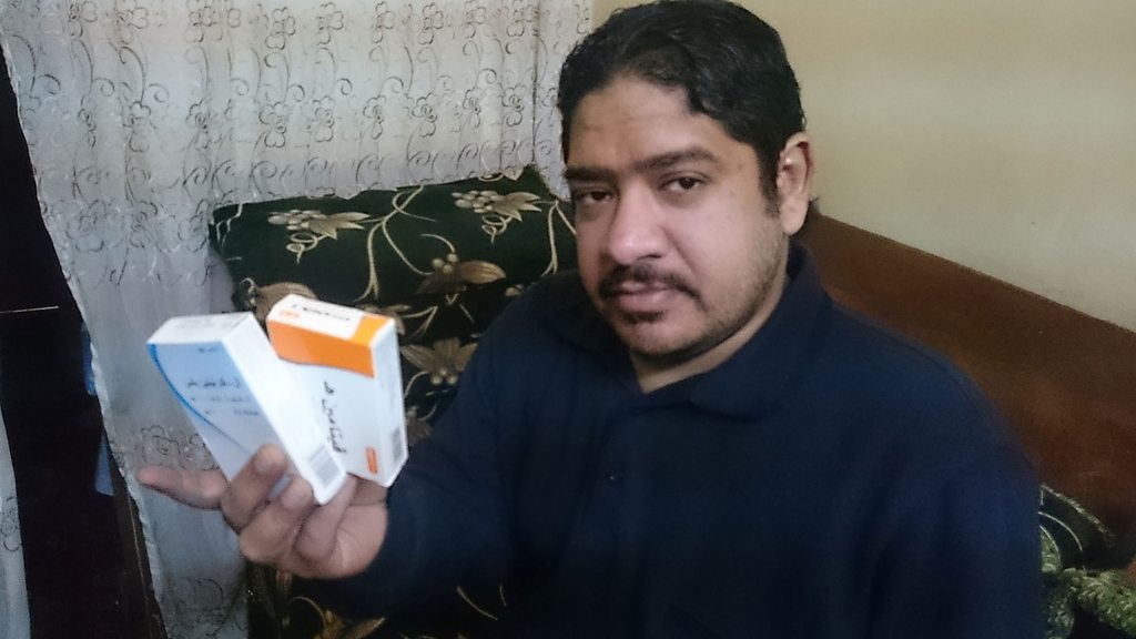Mahmoud Abbas Khattab has muscular dystrophy but he can no longer afford, or even find, the drugs he needs to treat his condition.
