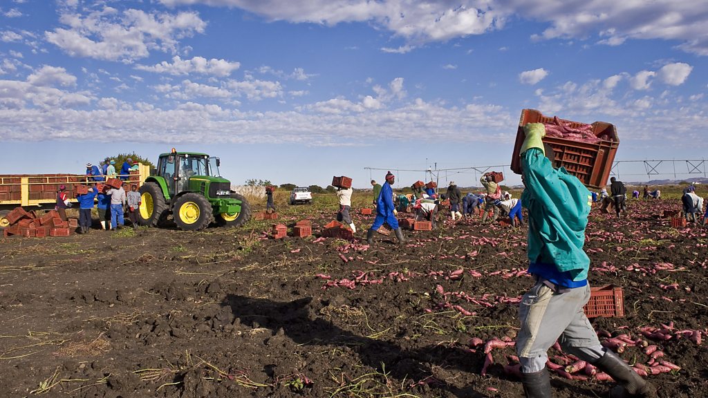 Having polio as a child in rural Zimbabwe meant Kudakwashe Dube couldn't farm, and became isolated from his tribe. Speaking to the BBC's Kathleen Hawkins, the CEO of the Africa Disability Alliance, he explains how people with disabilities can be discriminated against when it comes to taking part in agriculture, and receiving food aid. (Image: Farmers in Africa doing physically exerting work. Credit: Francois Xavier Marit/ Getty Images)