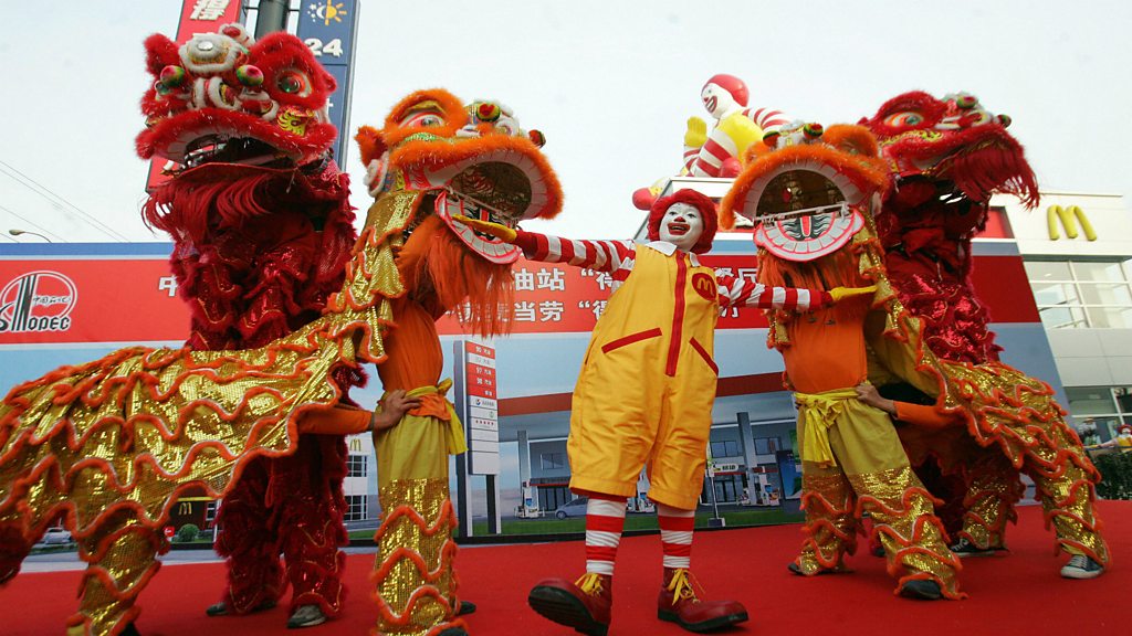 What can fast food tell us about the changing global economy? This week Karishma Vaswani, the BBC's Asia Business correspondent, takes a closer look at the history and the future of McDonald's in Asia. For many the company is a symbol of globalisation and food. To globalise though, the company has had to localize, and with that comes challenges. From Beijing, to Hong Kong, to Delhi, we explore the changing tastes of Asia, and what the future might be for a market many multi-national companies have set their sights on. Is the business model of franchising still an effective way to export a food business? And as countries modernise is it getting harder for a global brand to compete with local rivals? (Photo: Ronald McDonald at the opening of a McDonald's in Beijing. Photo credit: STR/AFP/Getty)