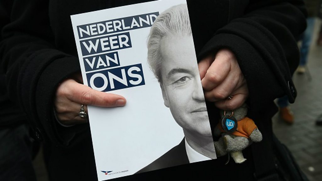 Will Geert Wilders and his supporters 'Make Netherlands ours again' in the upcoming election, possibly paving the way for another country to leave the EU? Dan Damon speaks to both sides of the argument, and asks how Brexit is influencing other EU countries. (IMAGE: Supporters of Dutch far-right politician and leader of the Partij Voor De Vrijheid (PVV or Freedom Party) Geert Wilders hold leaflets bearing his image and a slogan which translates as 'Make Netherlands ours again' - JOHN THYS/A FP/Getty Images)